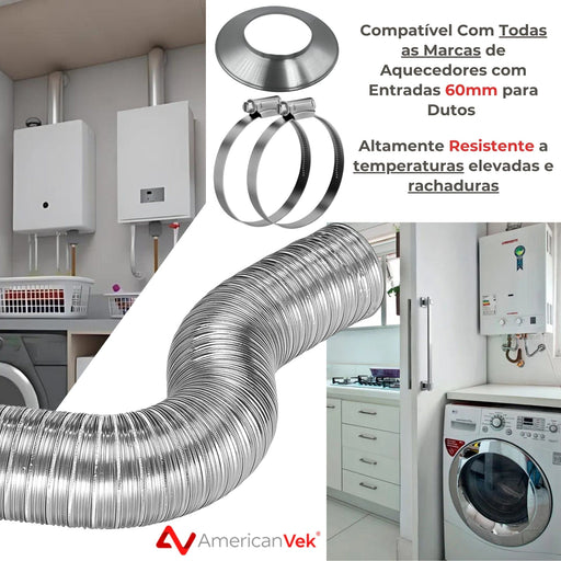 Kit Instalação Duto Semiflexivel Alumínio / Abraçadeiras / Aro Arremate - 60mm - 3 Metros Este kit completo é ideal para instalações de aquecedor...