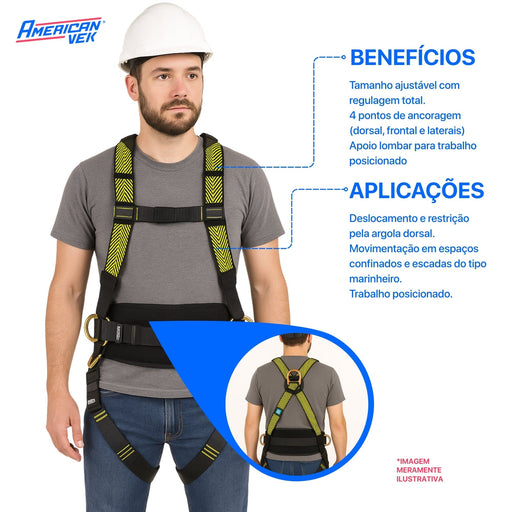 Cinto Segurança Paraquedista VIC20529 Com Trava Quedas Retrátil VIC22051 Vicsa
