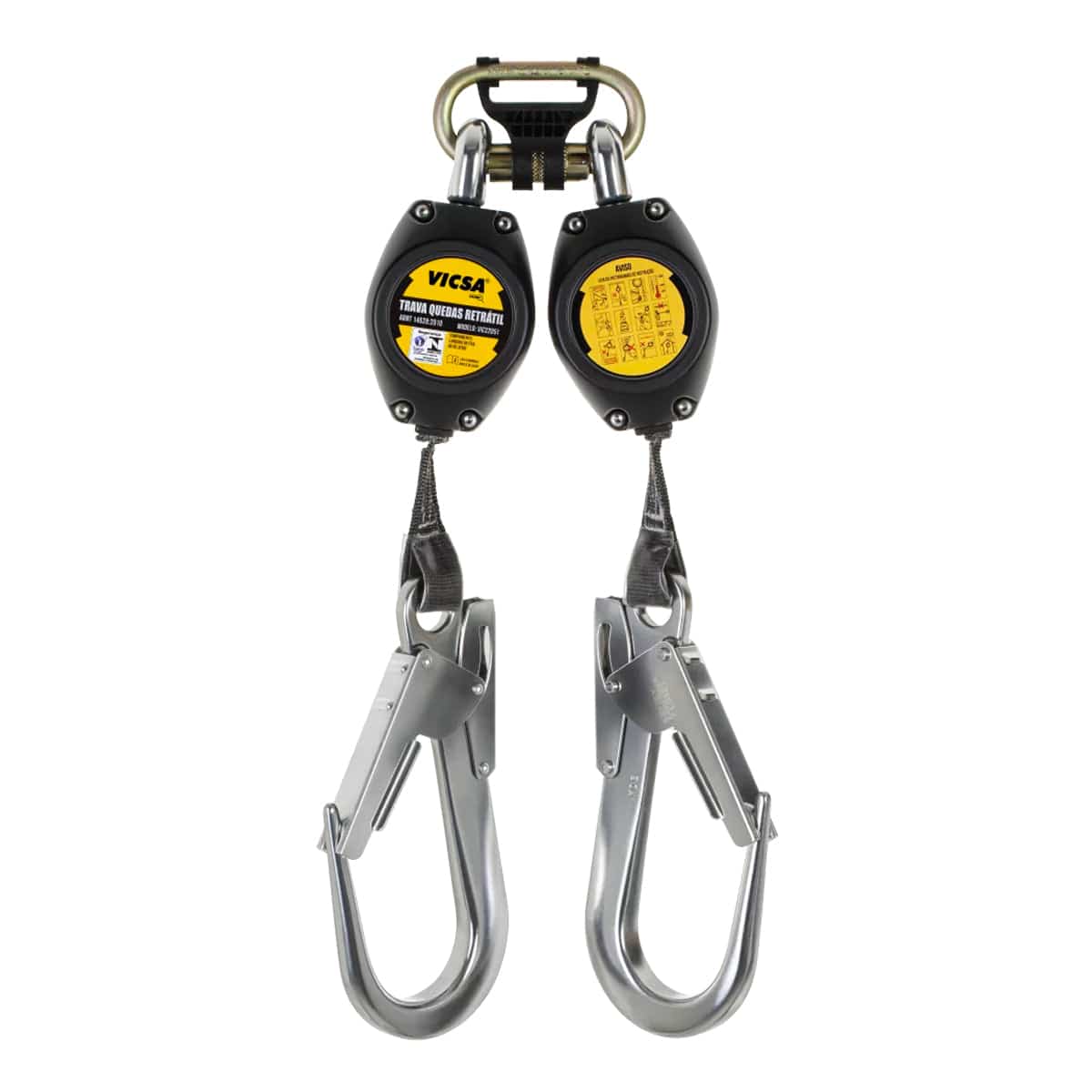 Trava Quedas Duplo Retrátil Y em Fita 2,10mts com Caixa em ABS Vicsa VIC22051 Benefícios• Retenção de queda mais rápida e com menor distância de pa...