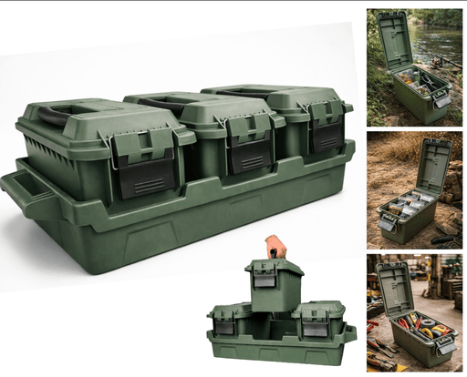 Kit 4 Caixas Organizadoras Estanques 4L com Bandeja AMMO – Plástico ABS Reforçado, Vedação e Fecho Metálico