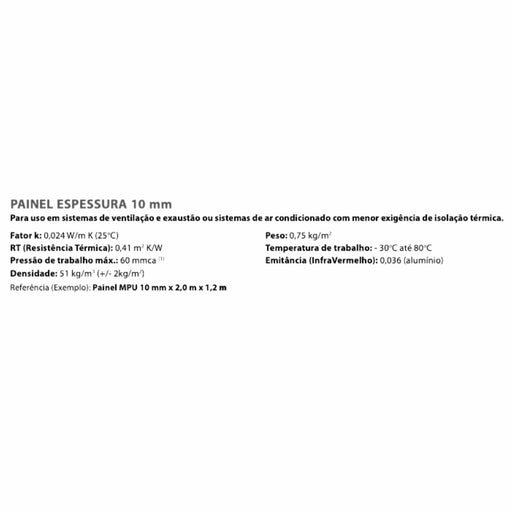 Painel de MPU 10mm para Dutos de Ar Condicionado - 10mm x 2mts x 1,2mts