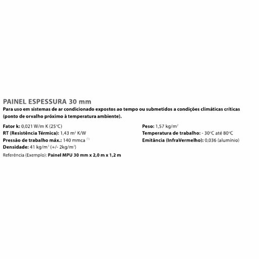 Ver todos os detalhesPainel de MPU 30mm para Dutos de Ar Condicionado - 30mm x 2mts x 1,2mts
