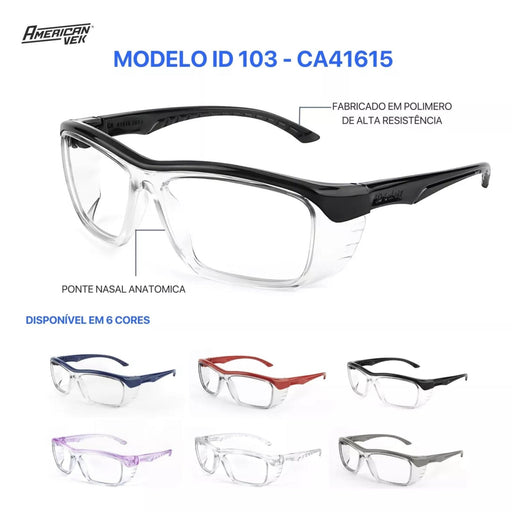 Oculos de Proteção para Graduação ID 105 – C.A.48015 - Para Lente de Grau Design moderno e tecnológico com ajuste de hasteretrátil e ângulo pantosc...