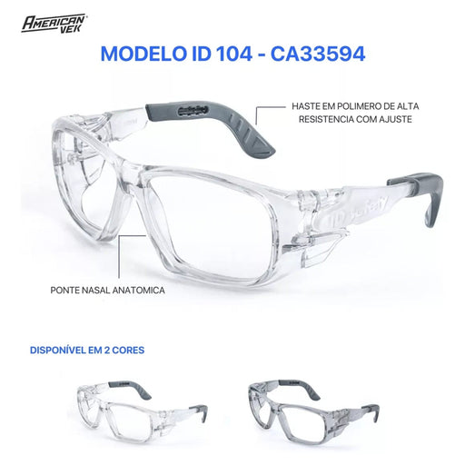 Oculos de Proteção para Graduação - ID 104 – C.A. 33594 - Para Lentes de Grau   Design moderno e tecnológico com ajuste de hasteretrátil e ângul...