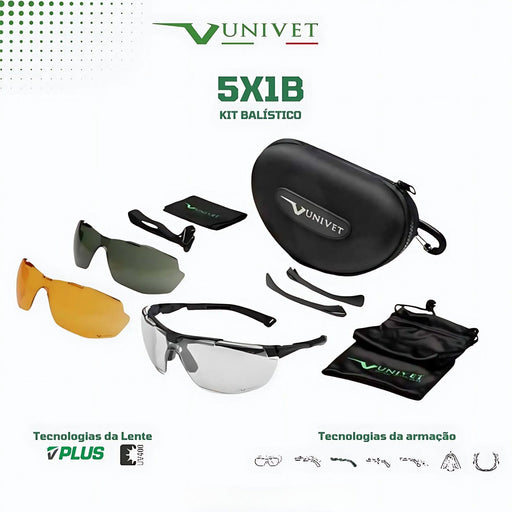 Óculos de Proteção Balística Hastes Intercambiáveis Essencial 5X1B - Univet