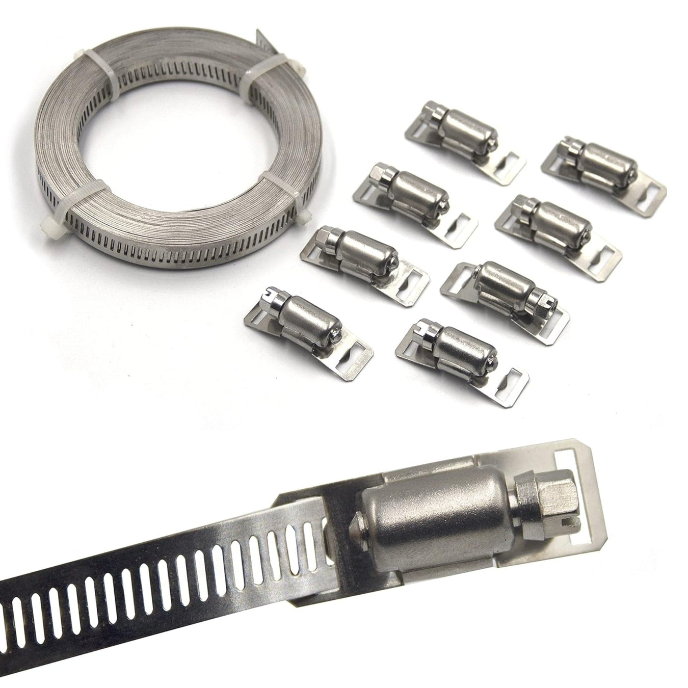 Abraçadeira Metálica em Aço Inoxidável SS201 com intervalo de diâmetro entre 90mm e 110mm. Descrição do Produto: Fabricada em aço inoxidável da ...