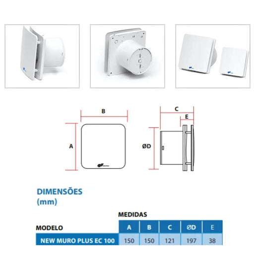 EXAUSTOR NOVO MURO PLUS EC 100mm - Bivolt. -  ATENÇÃO - PRODUTO BIVOLT Características do Produto: Exaustor Axial para renovação de ar em lavabos,...
