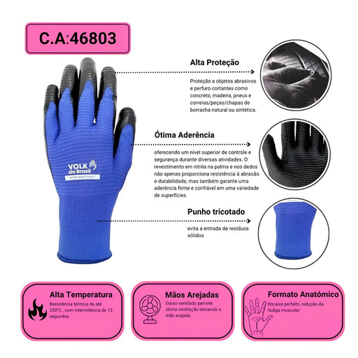Volk12 Pares - Luva Volk Nitril Wave Smart - Proteção contra situações abrasivas e térmicas. CA38932 / CA46803 - O CA pode variar de acordo com dispon...