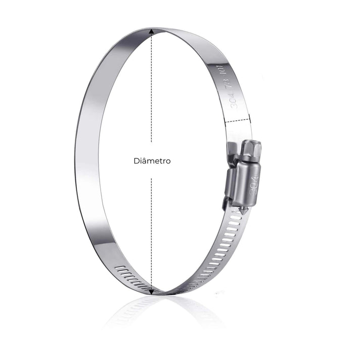 Disponíveis nos diâmetros de 100mm, 125mm, 150mm, 200mm, 250mm e 300mm. A fita de Aço Inox possui um grampo de parafuso que garante uma conexão firme e durável.