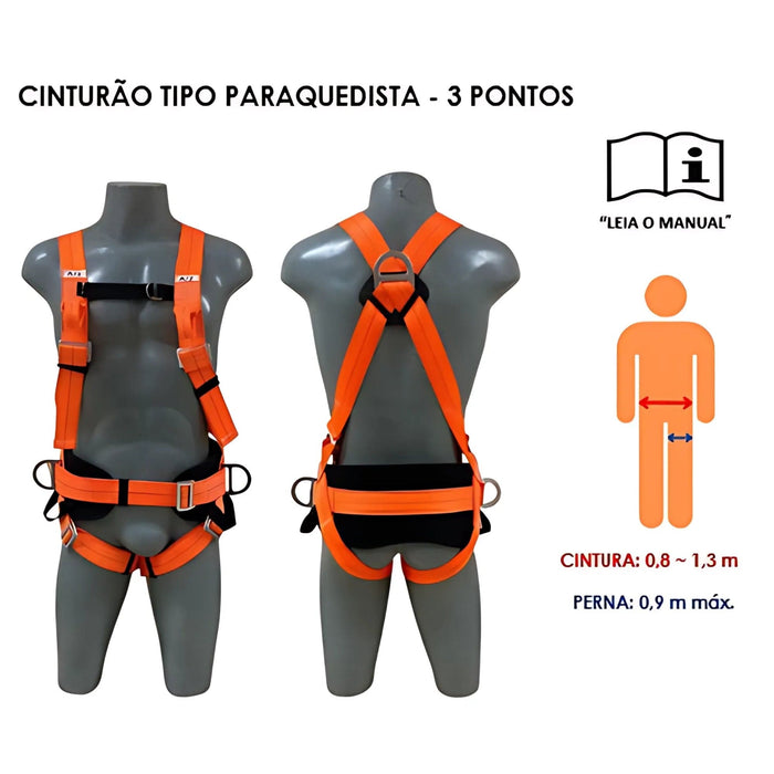 Cinto Paraquedista 3 Pontos Dorsal / Frontal / Posicionamento 3101234 PQ3 - Facintos | CA37126
