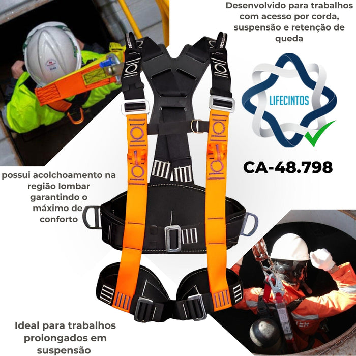 Cinto de Segurança Paraquedista Espaço Confinado Multiancoragem com Acolchoamento Abdominal - CA 48.798 - Suporta até 140kg
