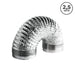 Duto Flexível Aluminizado de 2,5 metros de comprimento fabricado com dupla camada de folha de alumínio e filme de poliéster laminado (unido) com adesivo de poliuretano de alta performance e arame de alto carbono, de acordo com a norma NBR 16401.