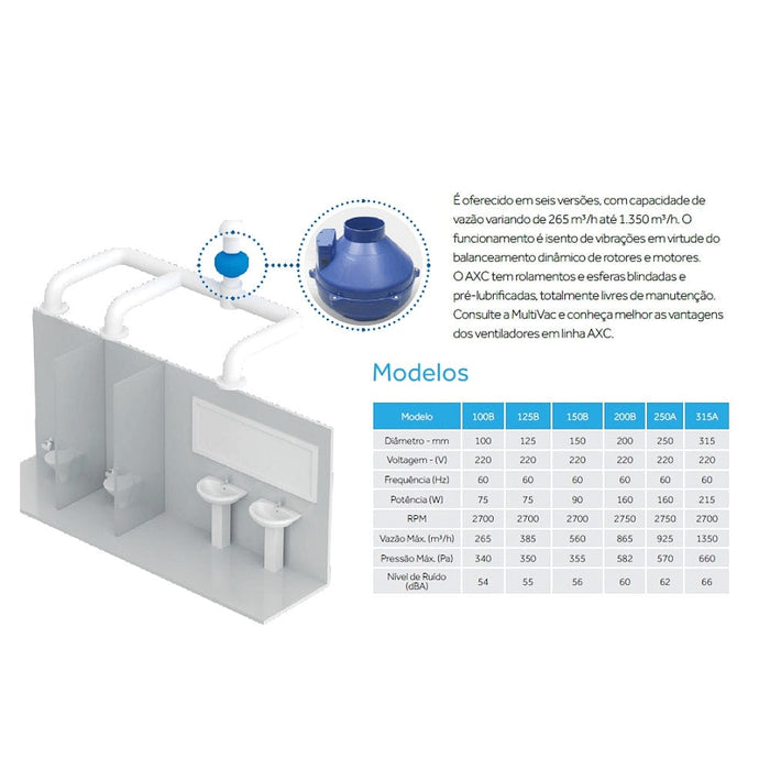Exaustor Centrífugo Inline AXC 150mm Vazão Máx. 560m3/h - 220V
