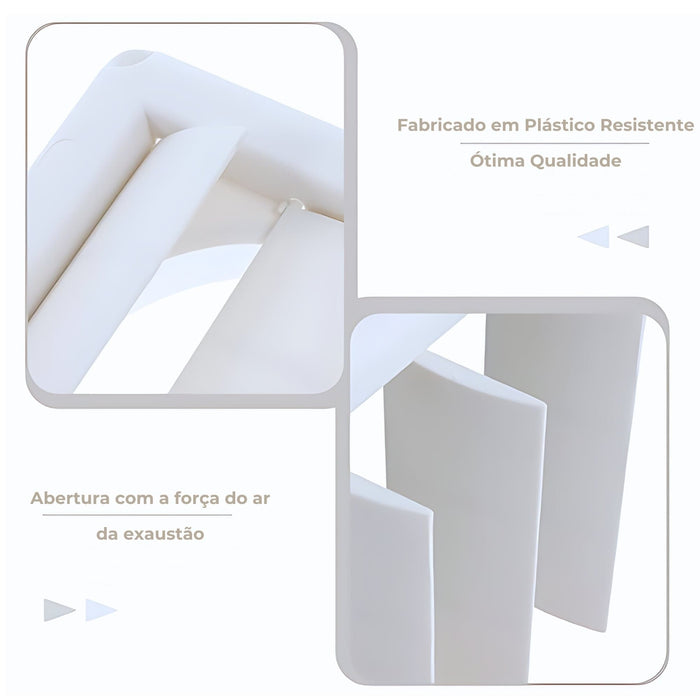 -Funcionamento Inteligente: As paletas móveis abrem com o fluxo de ar e fecham automaticamente, bloqueando a entrada de insetos quando o exaustor ou coifa não estão em uso.