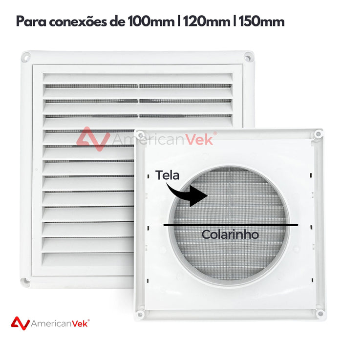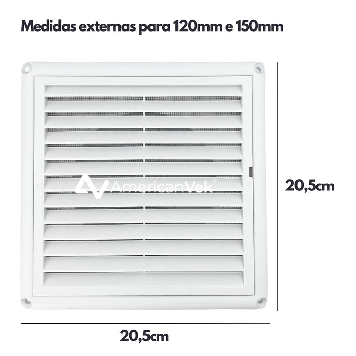 Grelha para Saída de Ar Fixa com Tela Anti Inseto - 150mm