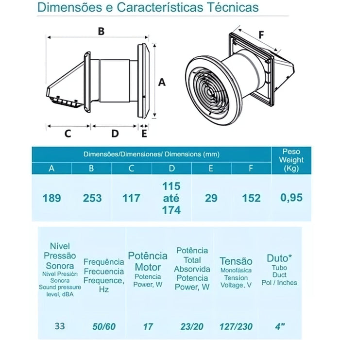Aplicações: Ideal para ventilação de pequenos ambientes residenciais e comerciais