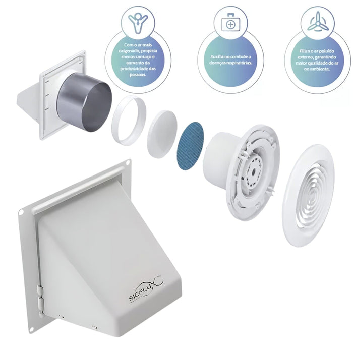 O Insuflador Splitvent foi desenvolvido para trabalhar junto com sistemas SPLIT, captando o ar externo, filtrando e inserindo no ambiente. Ele atende às exigências da Lei 13.589/2018, que determina a renovação do ar em locais climatizados, garantindo ar mais puro e saudável.