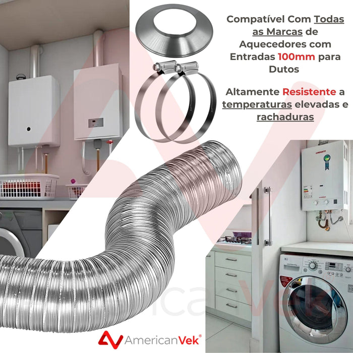 Duto Semiflexível Corrugado de 100mm x 3m - Confeccionado em alumínio com dupla cravação, garantindo resistência e flexibilidade. Perfeito para a exaustão de gases de aquecedores, facilitando a instalação em locais de difícil acesso.