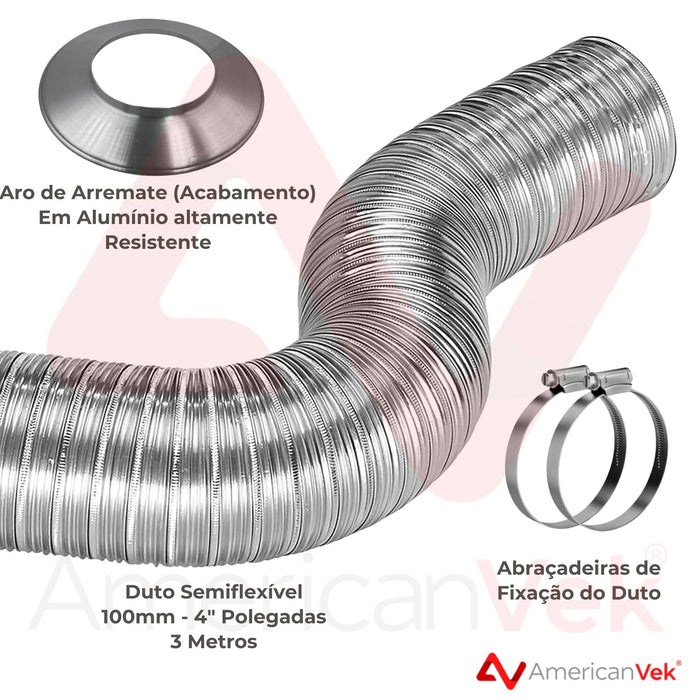 Kit Instalação Duto Semiflexivel Alumínio / Abraçadeiras / Aro Arremate - 100mm - 3 Metros