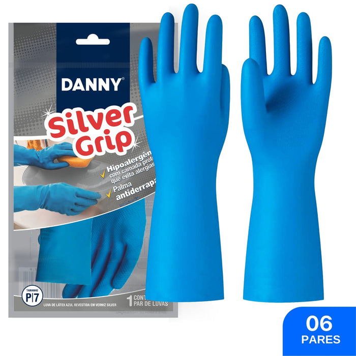 Kit 06 Pares - Luva de Proteção em Látex natural Silver Grip DA360 Danny - CA40730