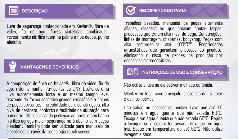 Luva de Segurança Danny DNY LiteForce Super Resistente - Anticorte, Térmica, Altamente Resistente para Manuseio de Peças Cortantes