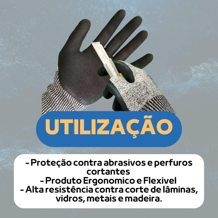 Luva de segurança de polietileno de alta densidade e PU