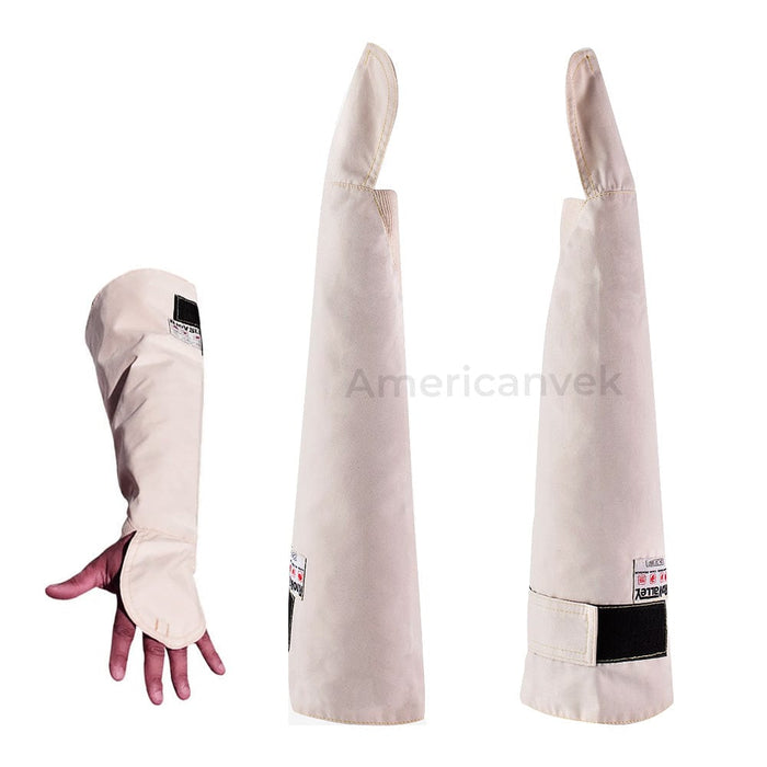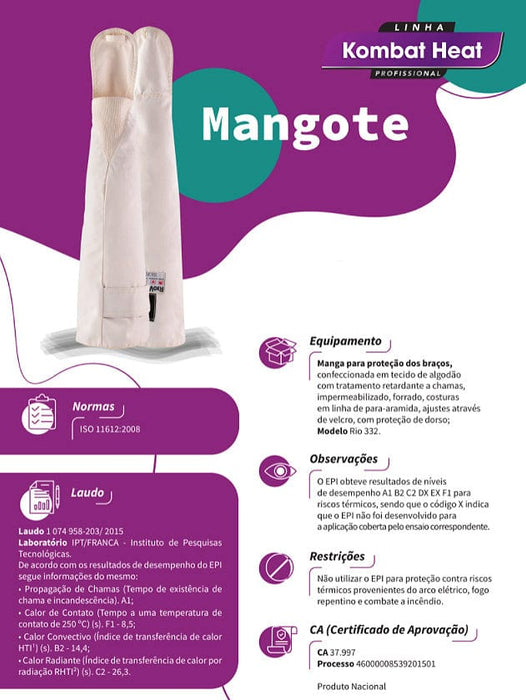 Mangote Térmico para alta temperatura de segurança confeccionado em tecido de algodão, com tratamento retardante a chamas, revestido em silicone, com punho em malha e proteção do dorso, costurado em linhas de para-aramida.