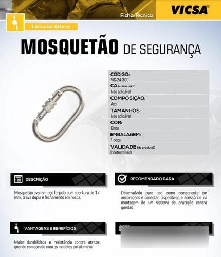 Mosquetão em Aço Oval Vicsa 17mm Trava Dupla 23kN VIC24300 (02 Unds)