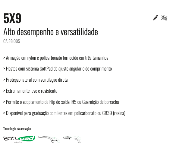 - ➡️ Permite Colocação de Lentes Graduadas