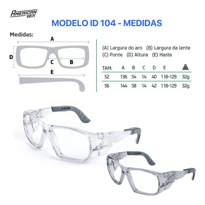 Oculos de Proteção para Graduação - ID 104 – C.A. 33594 - Para Lentes de Grau